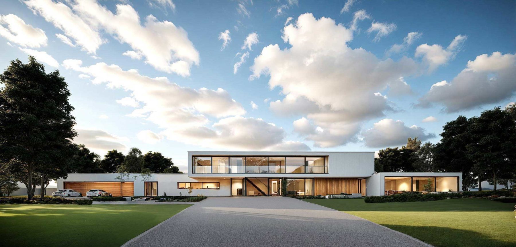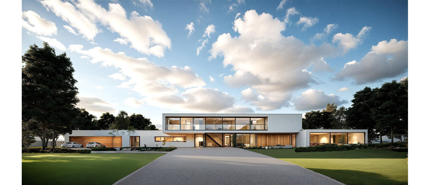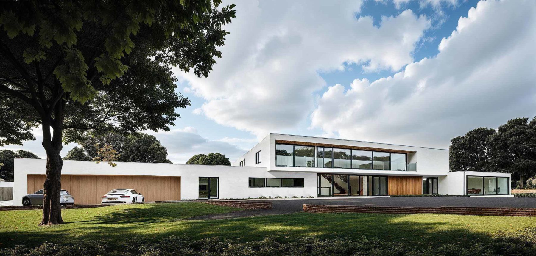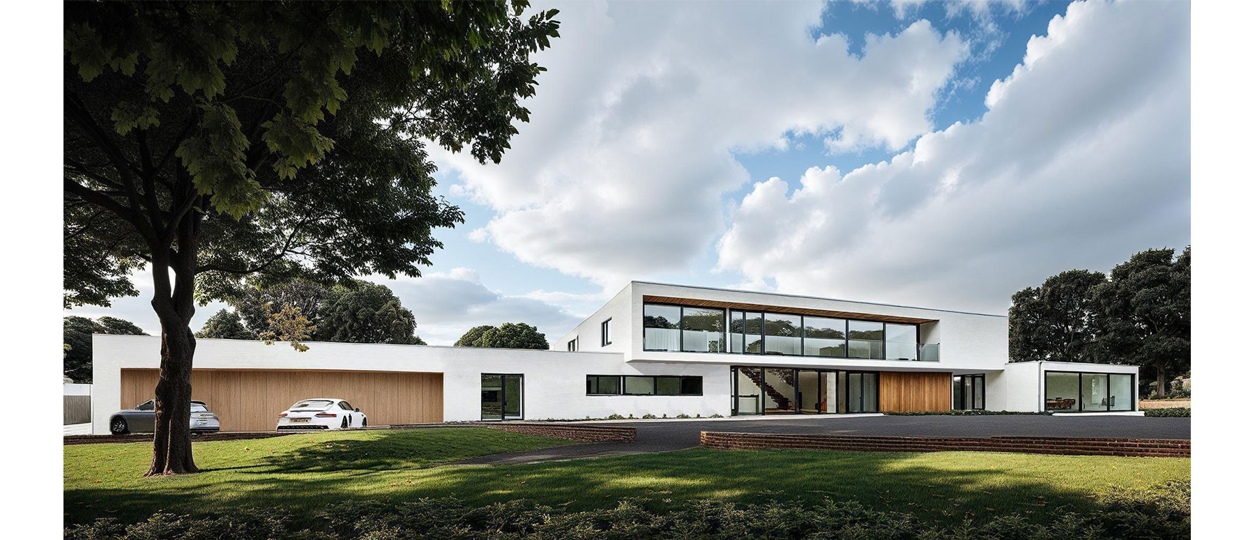 White render was chosen as the external material due to its ability to easily and cost effectively unify the existing house with the new extended areas so that the whole house could be read as one overall aesthetic and give the appearance of a completely new house. Elements of quality oak external panelling add to the contemporary feel and soften the crisp modern white form.