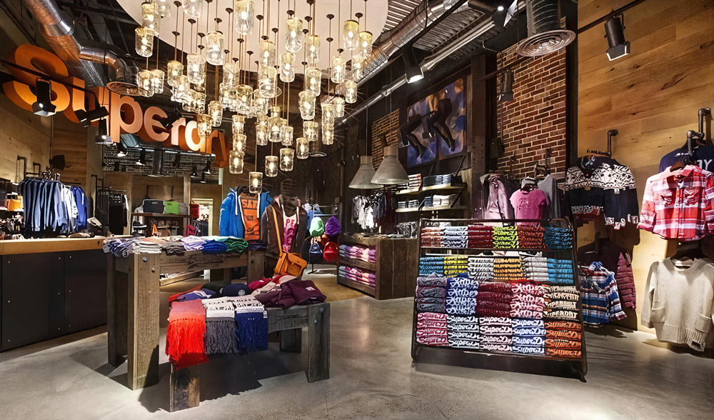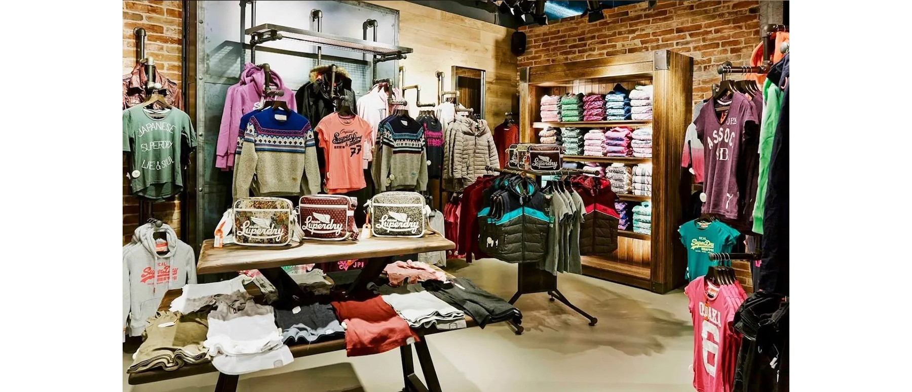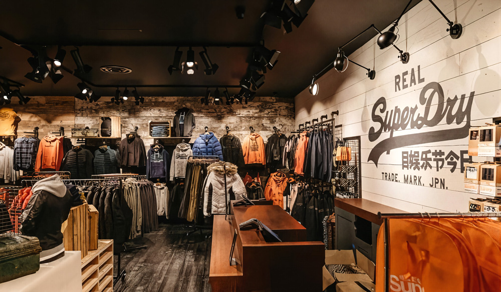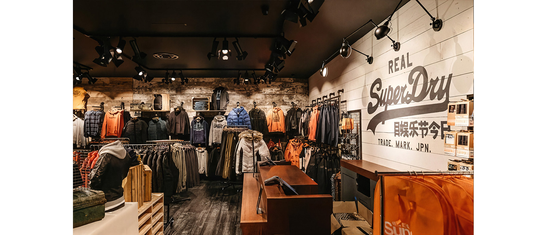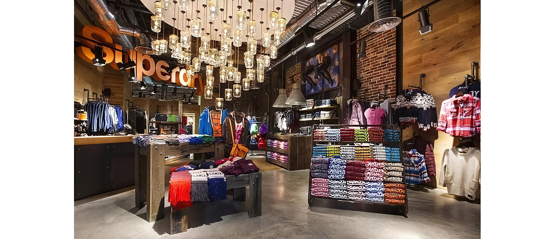 Superdry is a relatively new global retail clothing company. The brief for Interior designers Manchester, Andrew Wallace, was to develop and implement a design for a new store in Manchester’s Arndale Centre that sits broadly within their retail brand identity but expands this into a more contemporary expression.